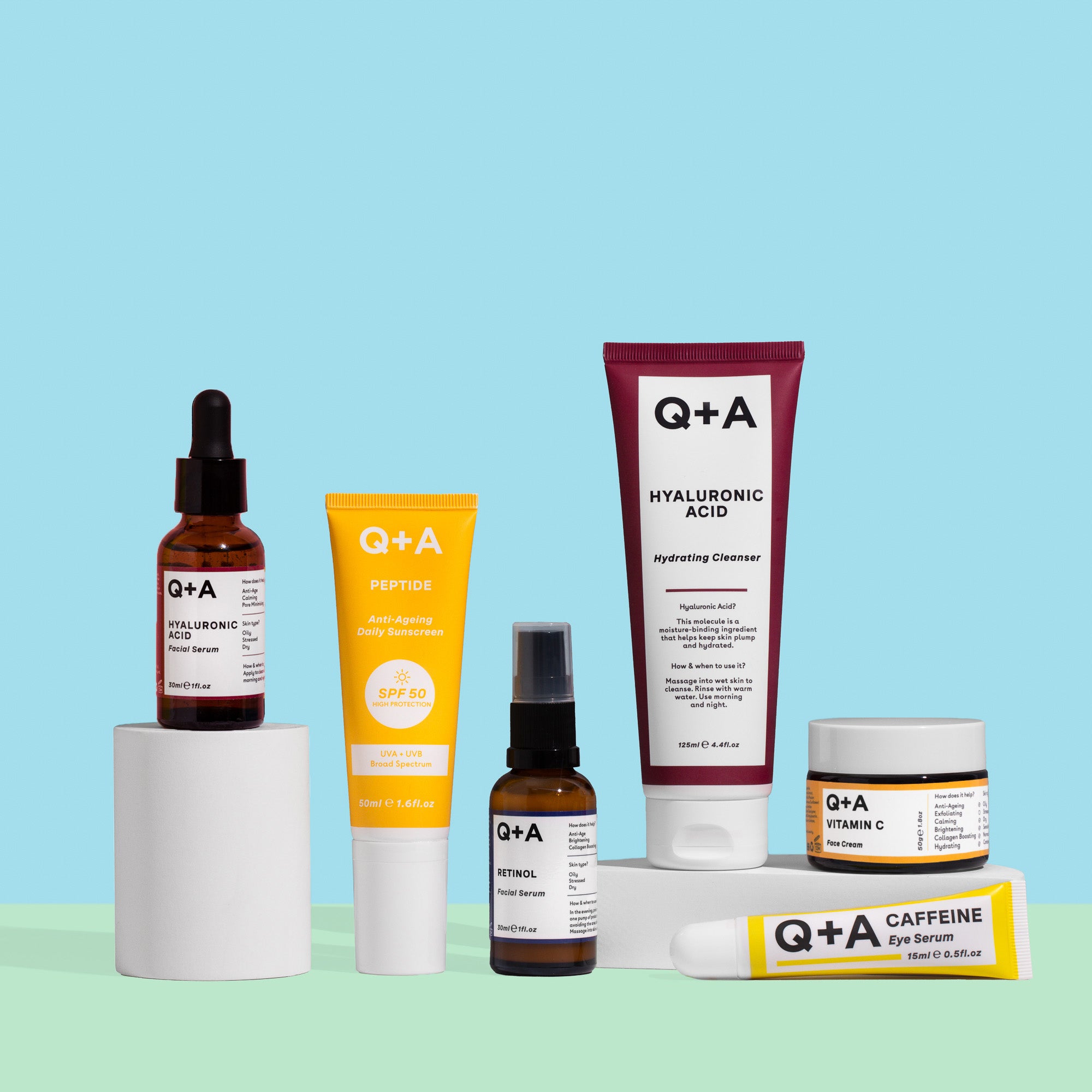 Upgrade: Choose the Complete Bundle and use the Peptide SPF 50 Anti-Ageing Daily Sunscreen and Hyaluronic Acid Facial Serum to protect and hydrate your skin.