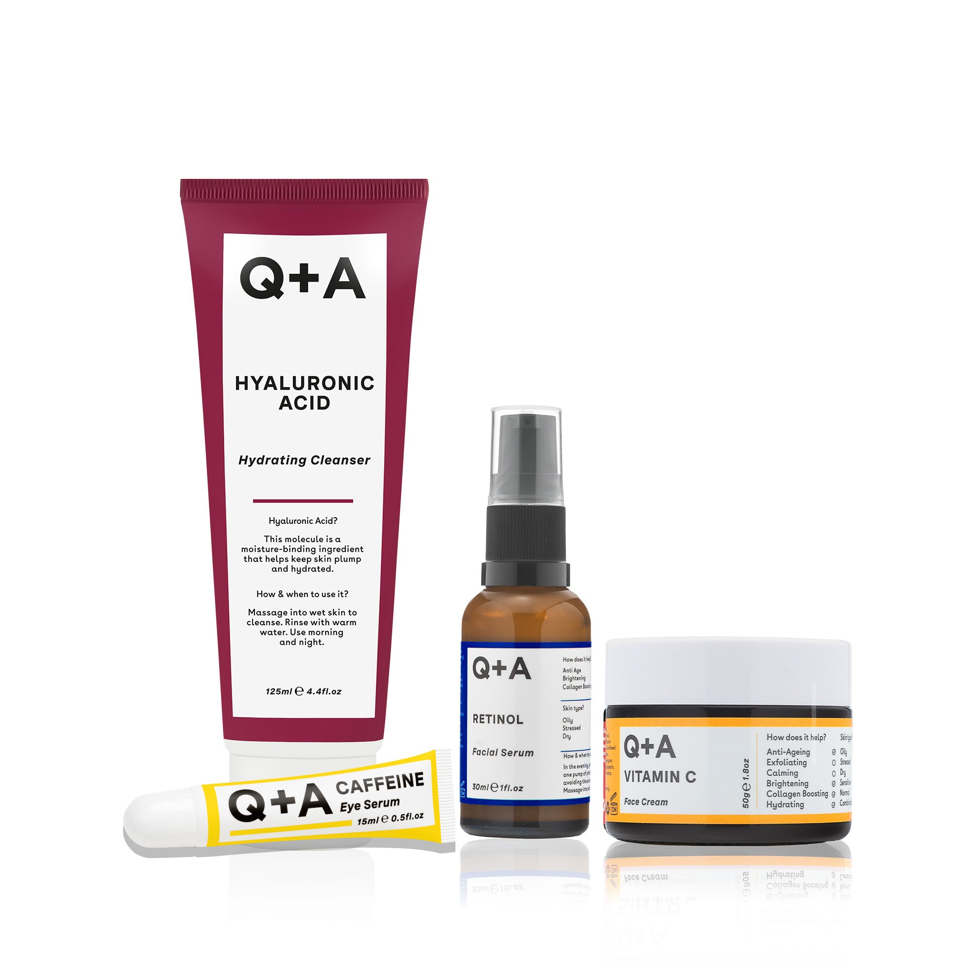 Upgrade to our Complete Bundle and you’ll receive the Peptide SPF 50 Anti-Ageing Daily Sunscreen (worth £15) and Hyaluronic Acid Facial Serum (worth £6.95).