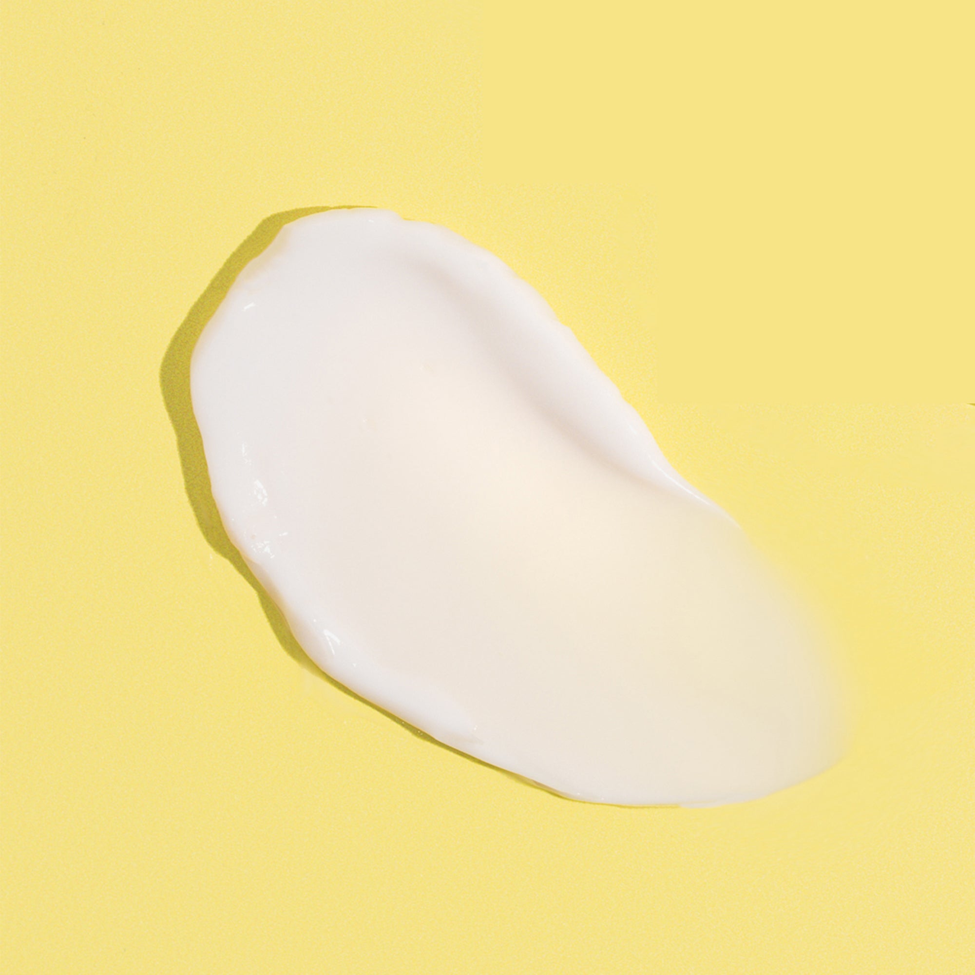 Swatch of Q+A Ceramide Shower Cream on yellow background