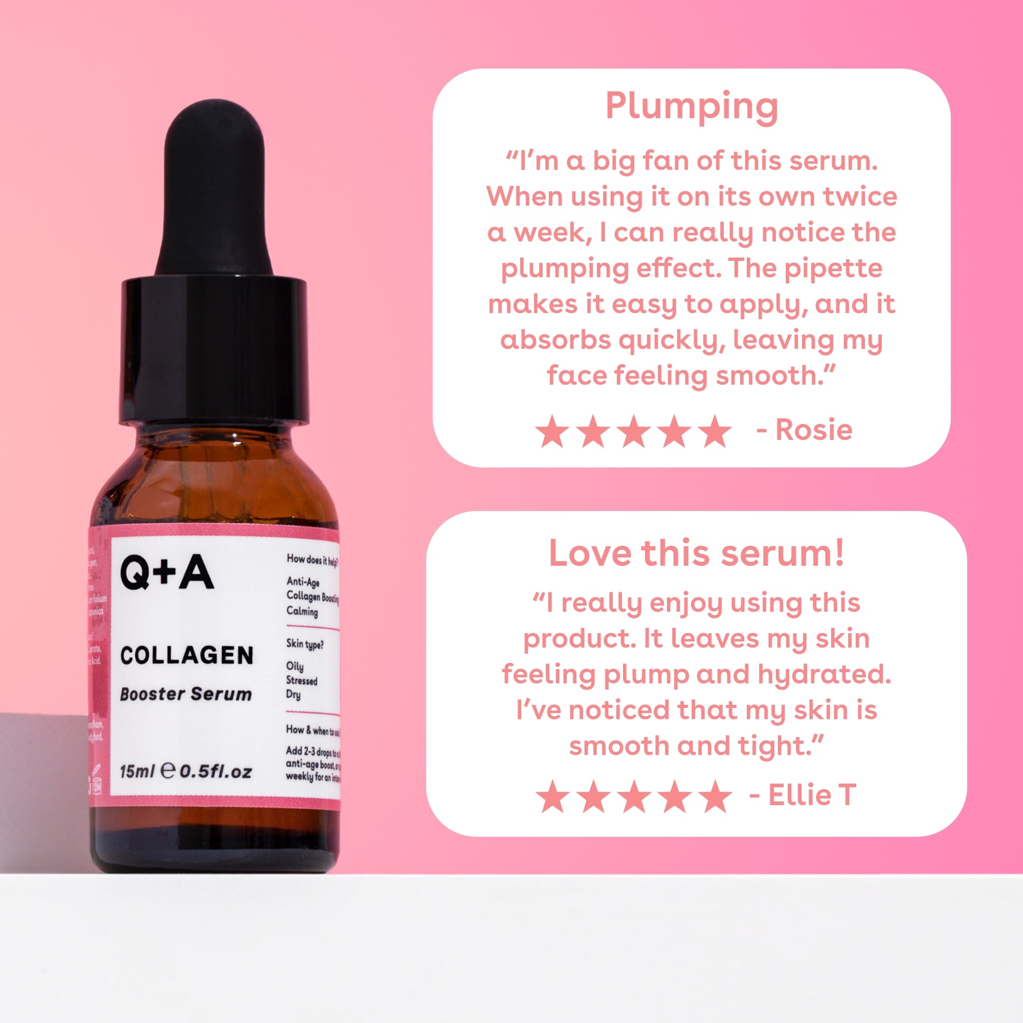 How do I use the Collagen Booster Serum? Add 1-2 drops to your moisturiser, eye cream or serum for an anti-ageing boost. Alternatively, apply directly to clean skin twice a week for an intensive lift. Can be used day or night. This serum is also the perfect product to prime your skin for smooth makeup application.