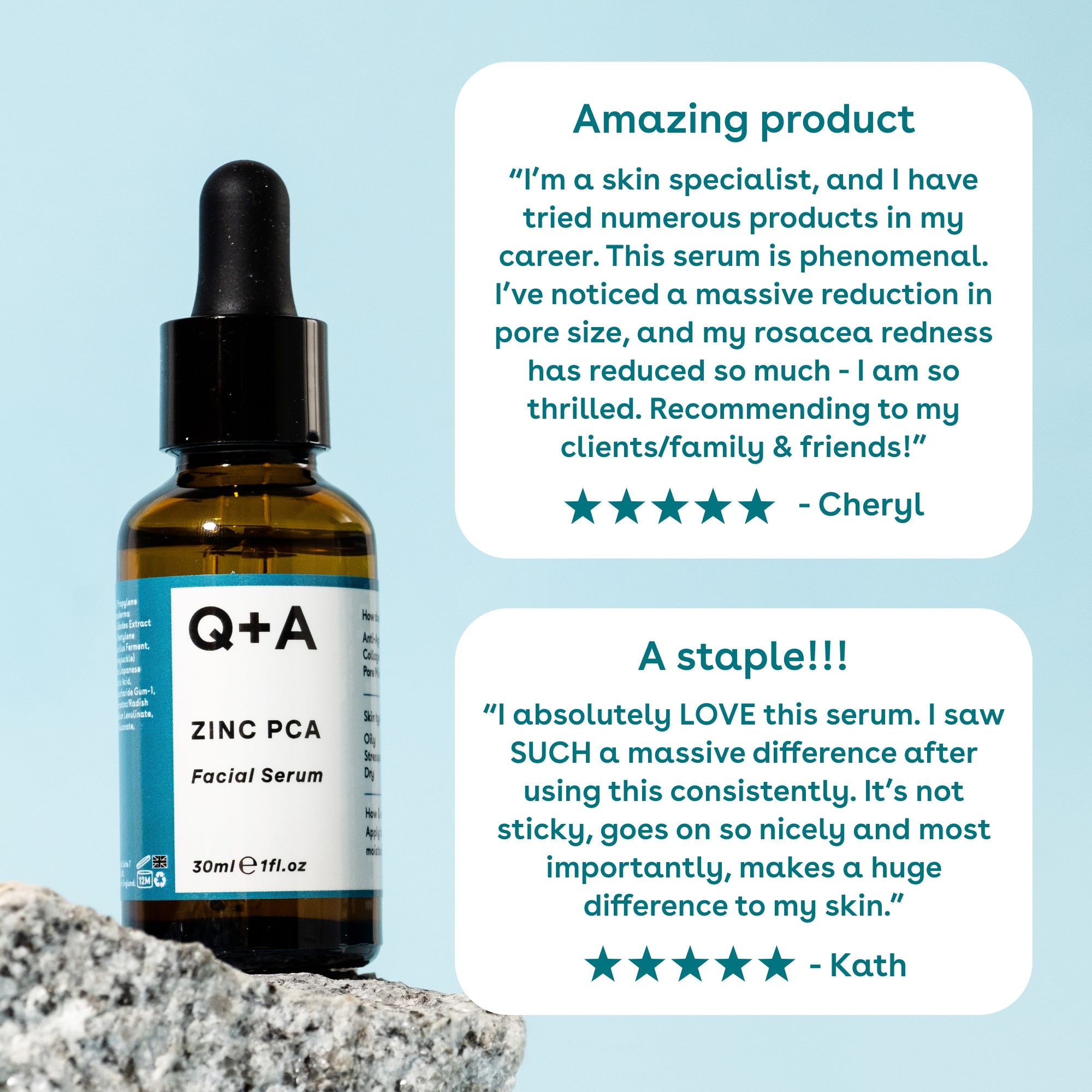 I’m 52 and am (mostly post-) menopausal. What I’ve always had a problem with is rosacea. I’ve used a high street, no animal testing, brand and another ethical British brand with the right animal testing ban credentials for years. But I’ve always had two problems - my face was still red and the sugary glycerin pot-holing of my face from the glycerin was ridiculous. Somehow, Q+A have included glycerine in their products without the same effects. Brilliant. I know zinc is good for your skin, but it was the mushrooms in this product that intrigued me and sure as dammit, the redness has completely disappeared. I can see cheek bones rather a a beach of redness around my lower cheeks. This is just a perfect product. Follow it with the marine toning lotion and whatever else and I swear I look 42!