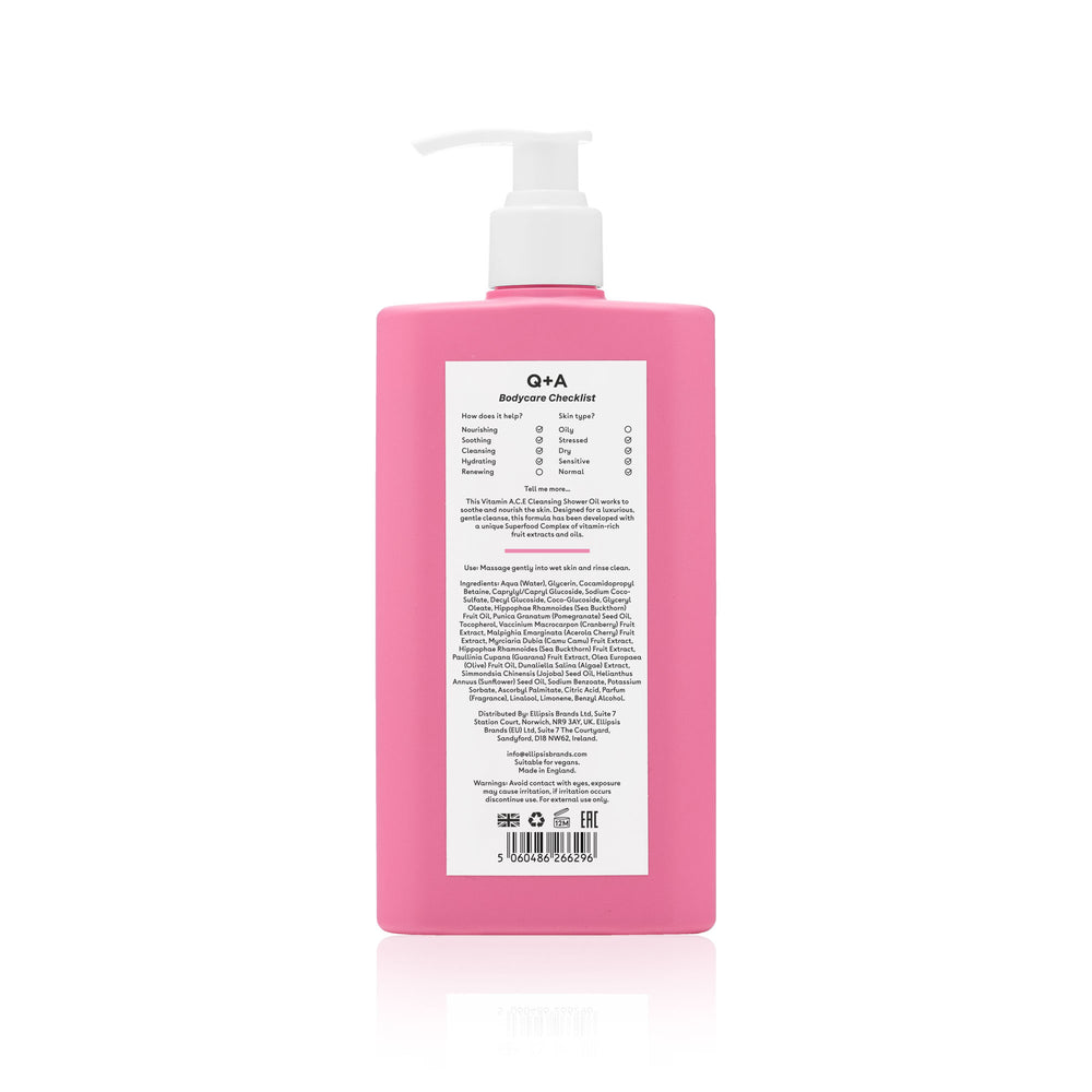 Q+A Vitamin A.C.E Cleansing Shower Oil Bodycare Checklist