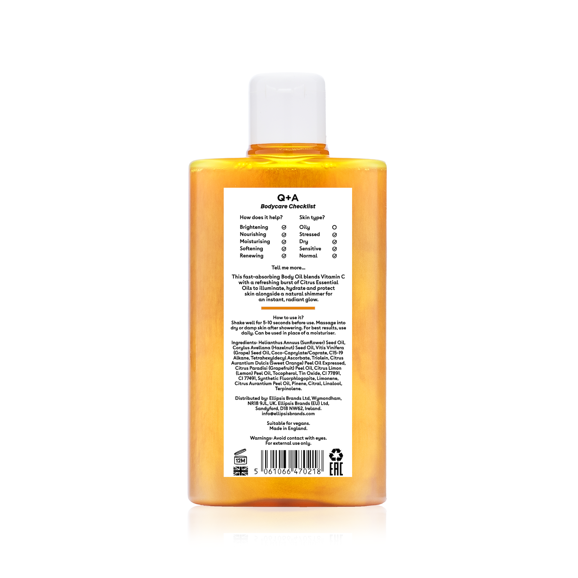 How do I use the Vitamin C Shimmer Body Oil? Shake well for 5-10 seconds before use to activate the shimmer. Massage into dry skin, focusing on the areas you want to enhance. Allow time to absorb before getting dressed. Can be used in place of a moisturiser, or layer for extra glow!