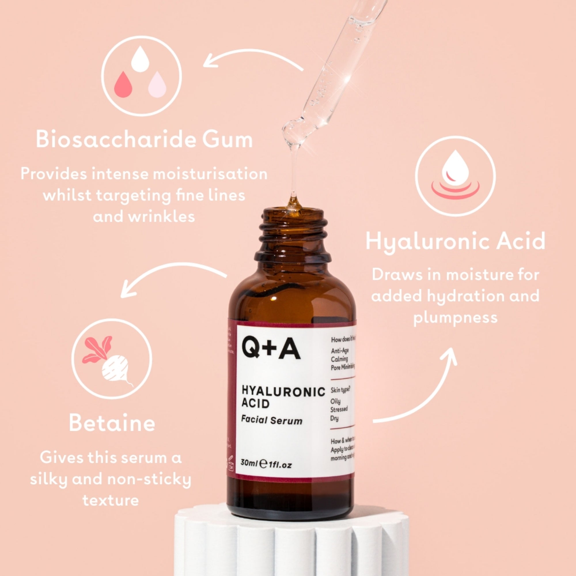 I really like this serum because it's very hydrating, it's very enjoyable to use as it is not sticky, and it comes in a dropper. Q and A have made it easy for me to use this product because of the texture - it's a firm gel like liquid, very enjoyable. I found it easy to spread and blend this serum on my face in my evening skincare routine. I think this is one of the best hyaluronic acid serums on the market. I would rate this product a good nine out of ten.